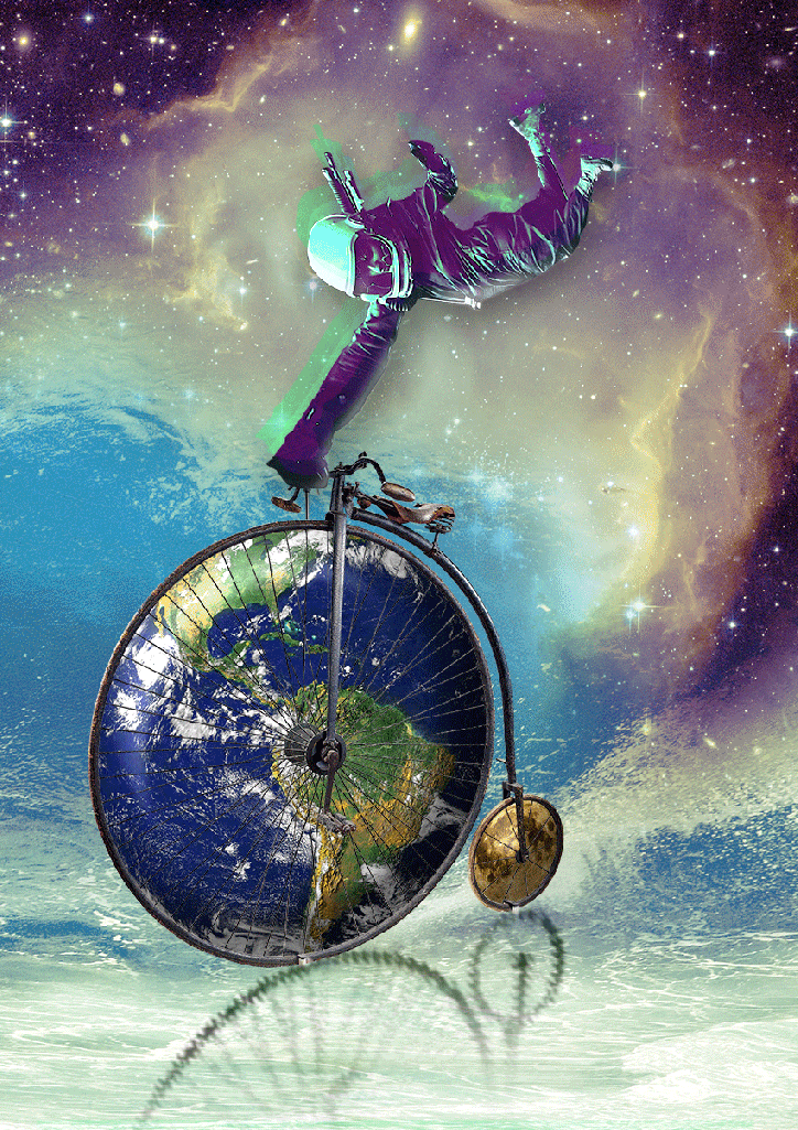 HAZE is a magazine for unconventional travel destinations. What is more unconventional than a cosmonaut riding a penny-farthing in Space?